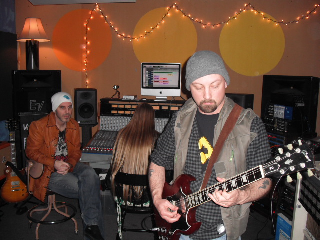 Bryan gage performing lead guitar track on “Carnaby Shuffle” at sanity Sound Studios in W. Los Angeles on March 1st, 2012